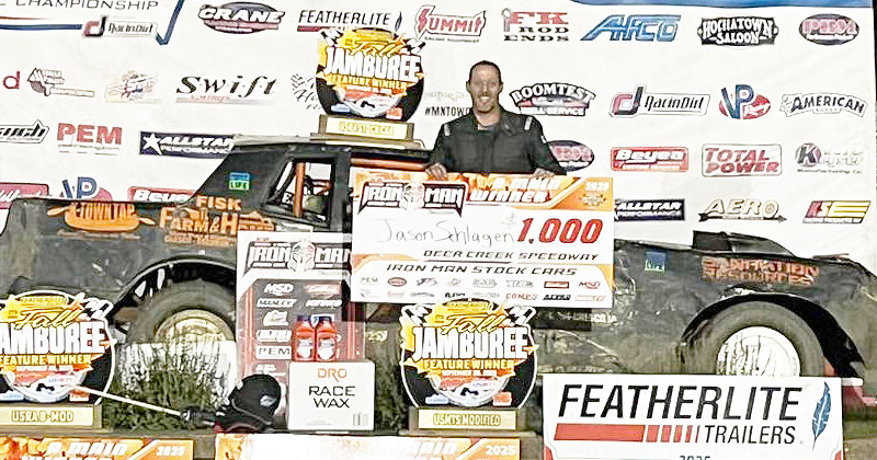 SPRING VALLEY, Minn. (Sept. 26, 2025)—Friday night at Deer Creek Speedway, Jason Schlangen of Cresco, Iowa, claimed the feature victory in the USRA Stock Cara, which was the first night of the USRA KS Engineering Iron Man Stock Car Series driven by Terminator Chassis during the 27th Annual Featherlite Fall Jamboree presented by RacinDirt.